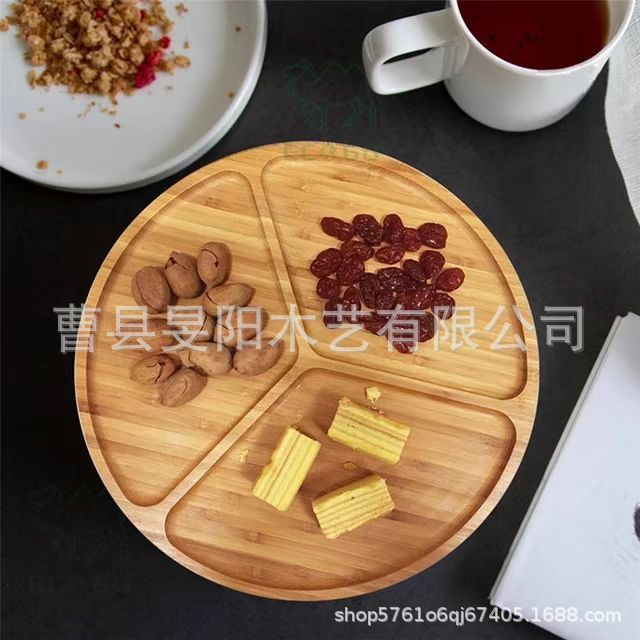 家庭用分格木製トレイ多機能ドライフルーツ収納盤キッチン実木円形パンフルーツプレート