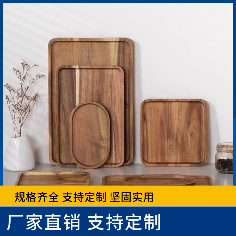 モダンなシンプルな家庭用木製トレイケーキショップスナック木製ディスプレイプレートソース卸売アカシア木製トレイ