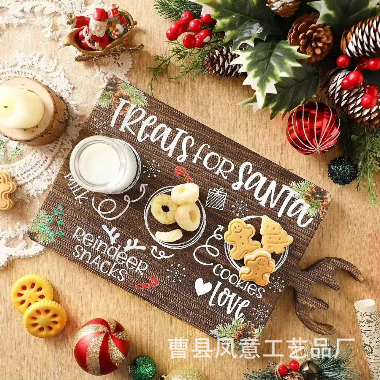 無垢材ヘラジカトレイクリスマスクッキートレイ木製漫画鹿の角フルーツ子供用食器ディナープレート