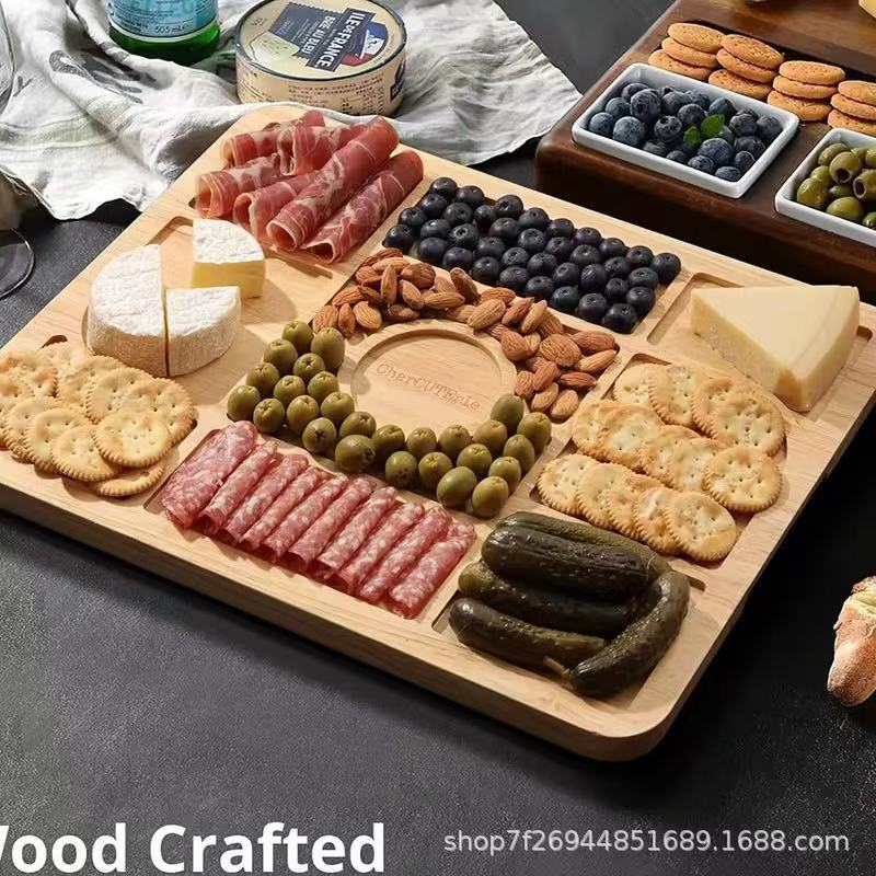 竹木製まな板家庭用果物と野菜レーザー彫刻トレイ木製屋外ポータブルスナックプレート