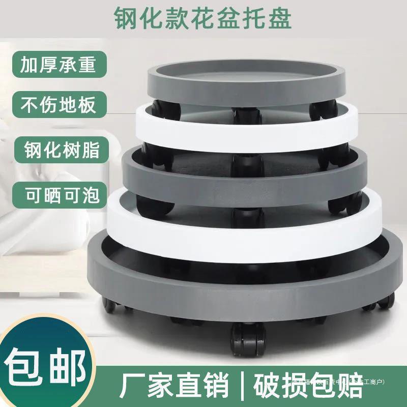 Huixin モバイル植木鉢トレイ緑の植物ホイール付き厚みのあるベースラウンドローラーシャーシ大型水受けトレイ白