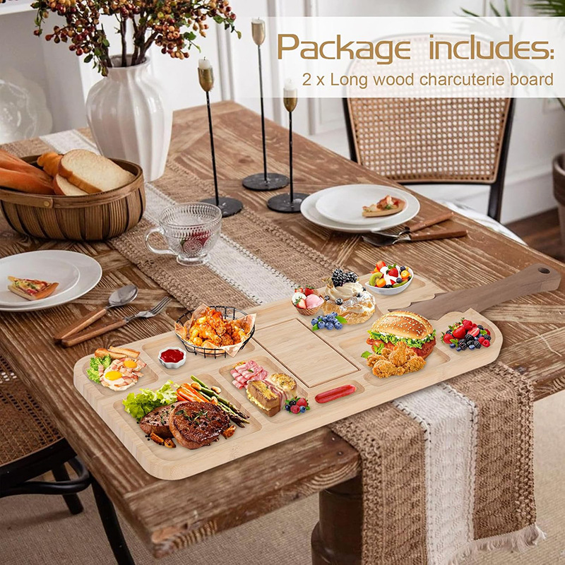 木製のパーティーのピクニックのハンバーガーのデザートの食事の皿の家庭用の客間のデスクトップの実木の長いタイプの手提げのトレーのパーティーの食事の皿