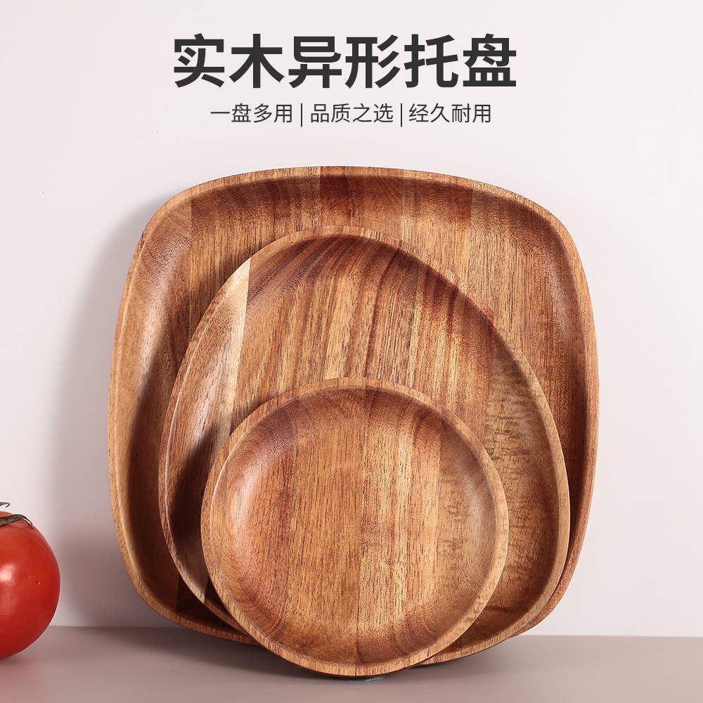 シンプルな木製トレイテーブルのお菓子果物トレイアカシア木トレイ実木チーズケーキ皿