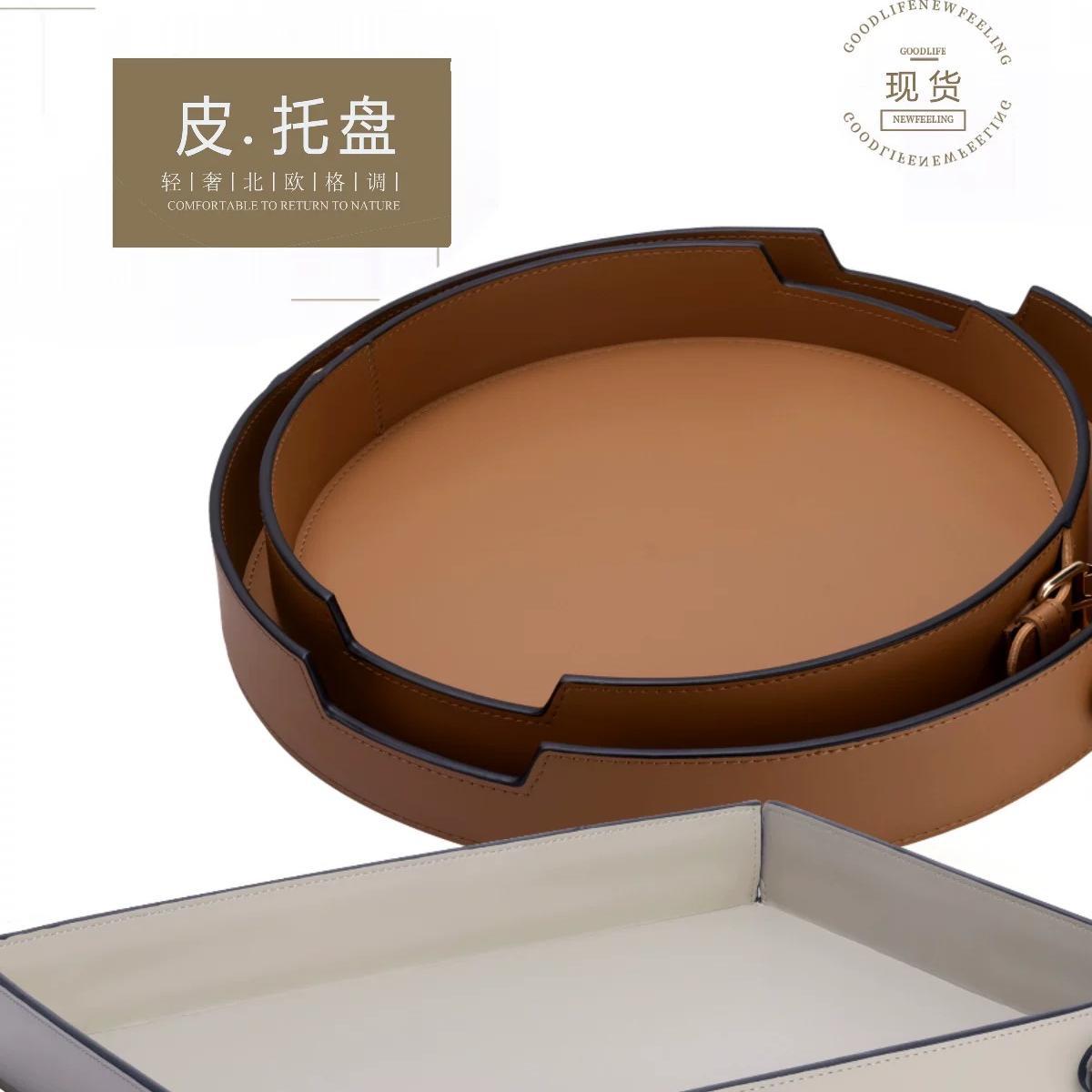 サドルレザー収納トレイクリエイティブリビングルームホームシンプルライト高級収納バスケットモデルルームソフト装飾デザイナーアクセサリー