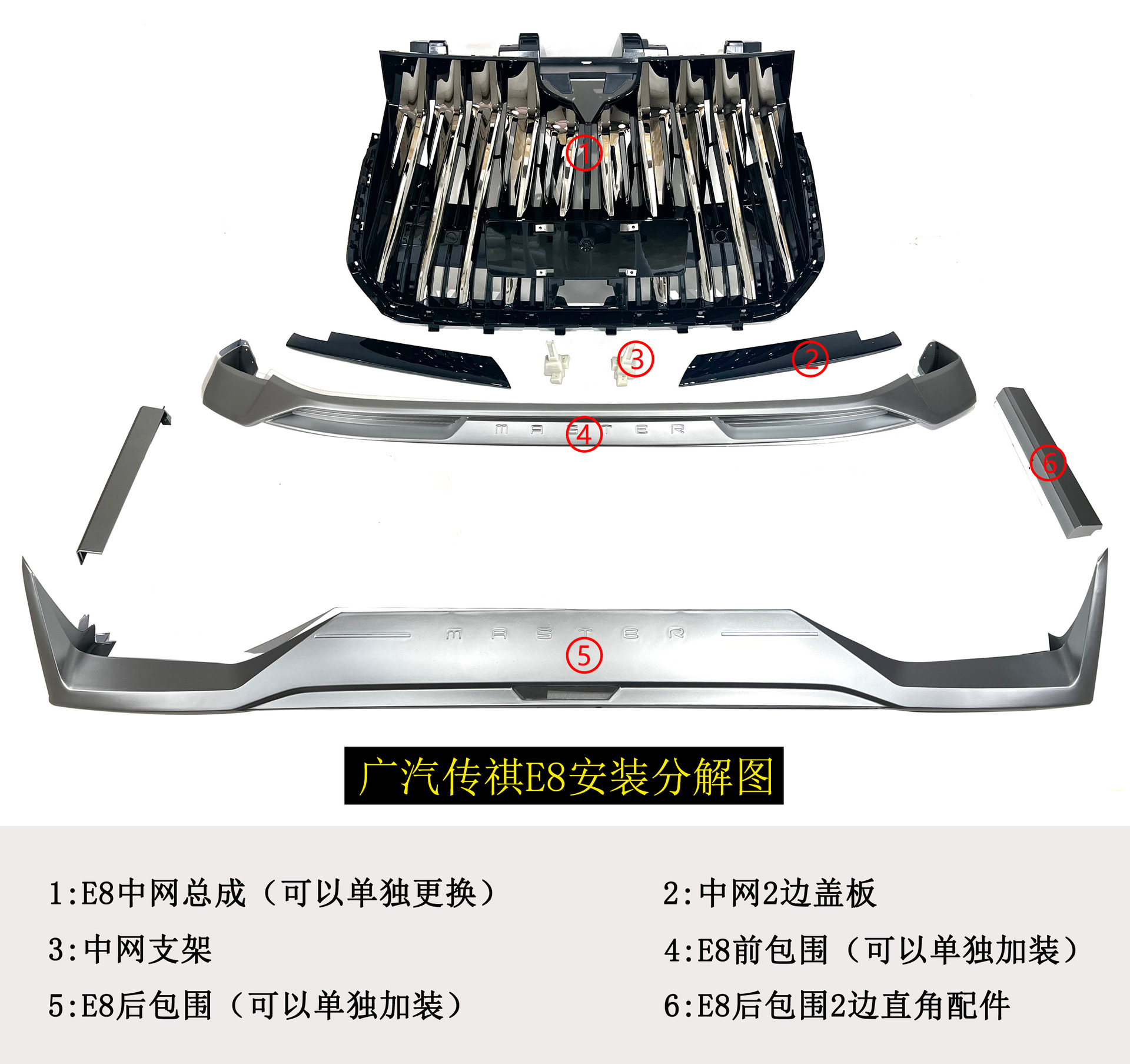 Trumpchi E8 改造グリルアップグレード M8 Master グリル交換に適しています。ノンロス E8 フロントフェイスサラウンドの前後改造に適しています。