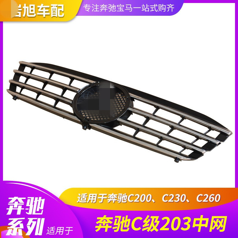 適用ベンツw203 c200c230c260c級大標準改造中網黒色灰色前顔グリル棒網