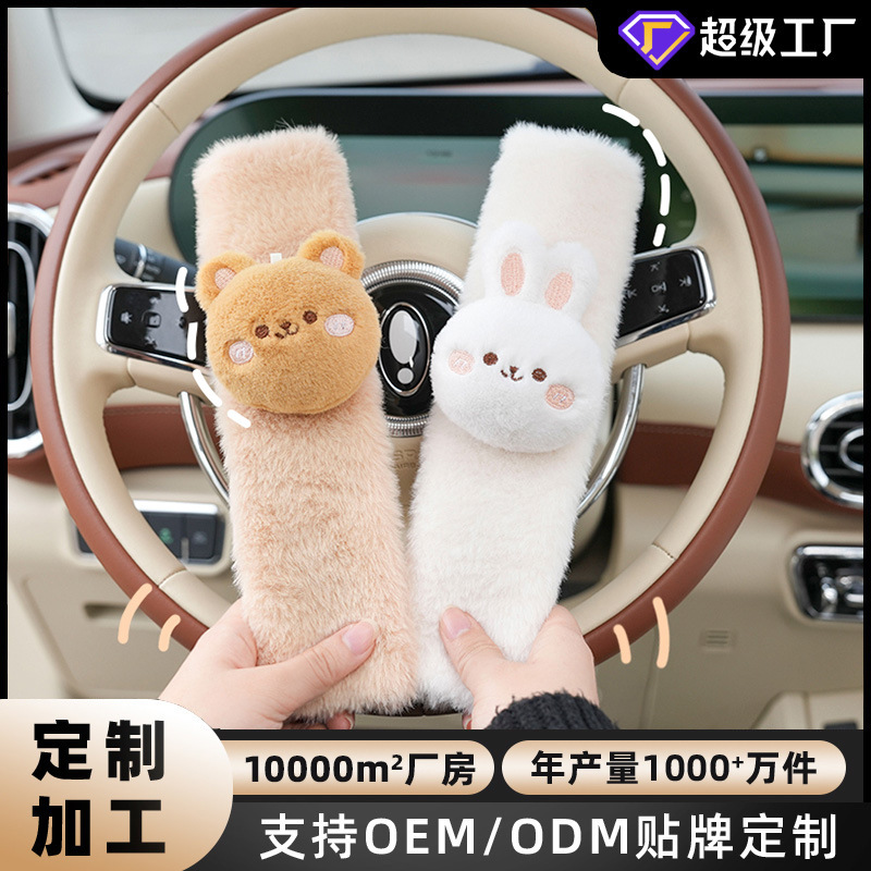 車のショルダープロテクター、カーアクセサリー、シンプルなアイスシルクぬいぐるみ、柔らかく快適な生地、便利な保護カバー、カスタマイズ