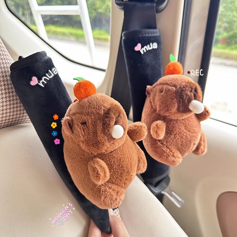 車のシートベルトの肩カバーの車の首のピンクのかわいいカピバラの装飾用品の女性