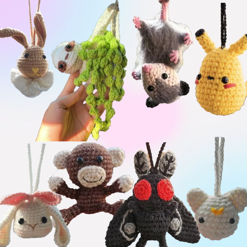 外国貿易のアマゾンの越境する新型の純粋な手作業のかぎ編みの漫画の動物の車のバックミラーの装飾の車は完成品を掛けます。