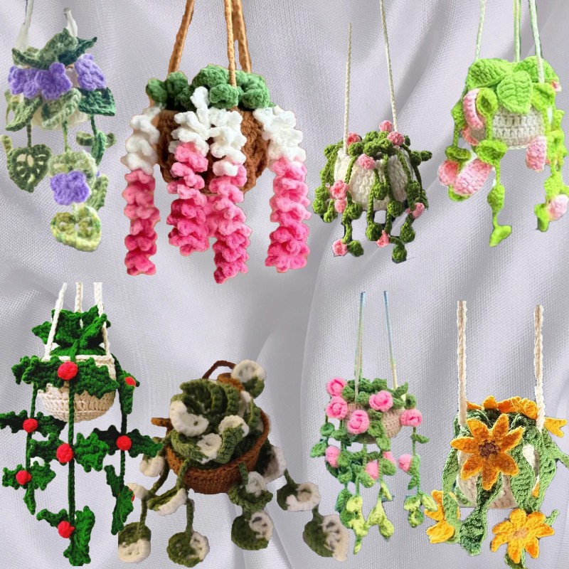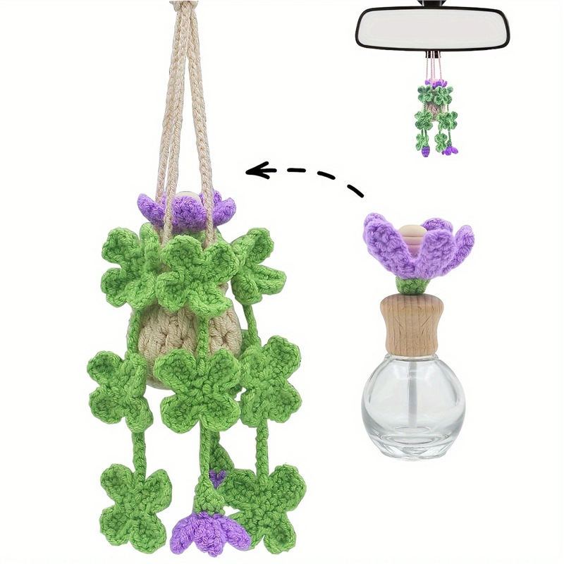 新しいアイデアの手編み植物の自動車の掛け物のニットはかごの花のバックミラーの装飾の車載の掛け物を編みます。