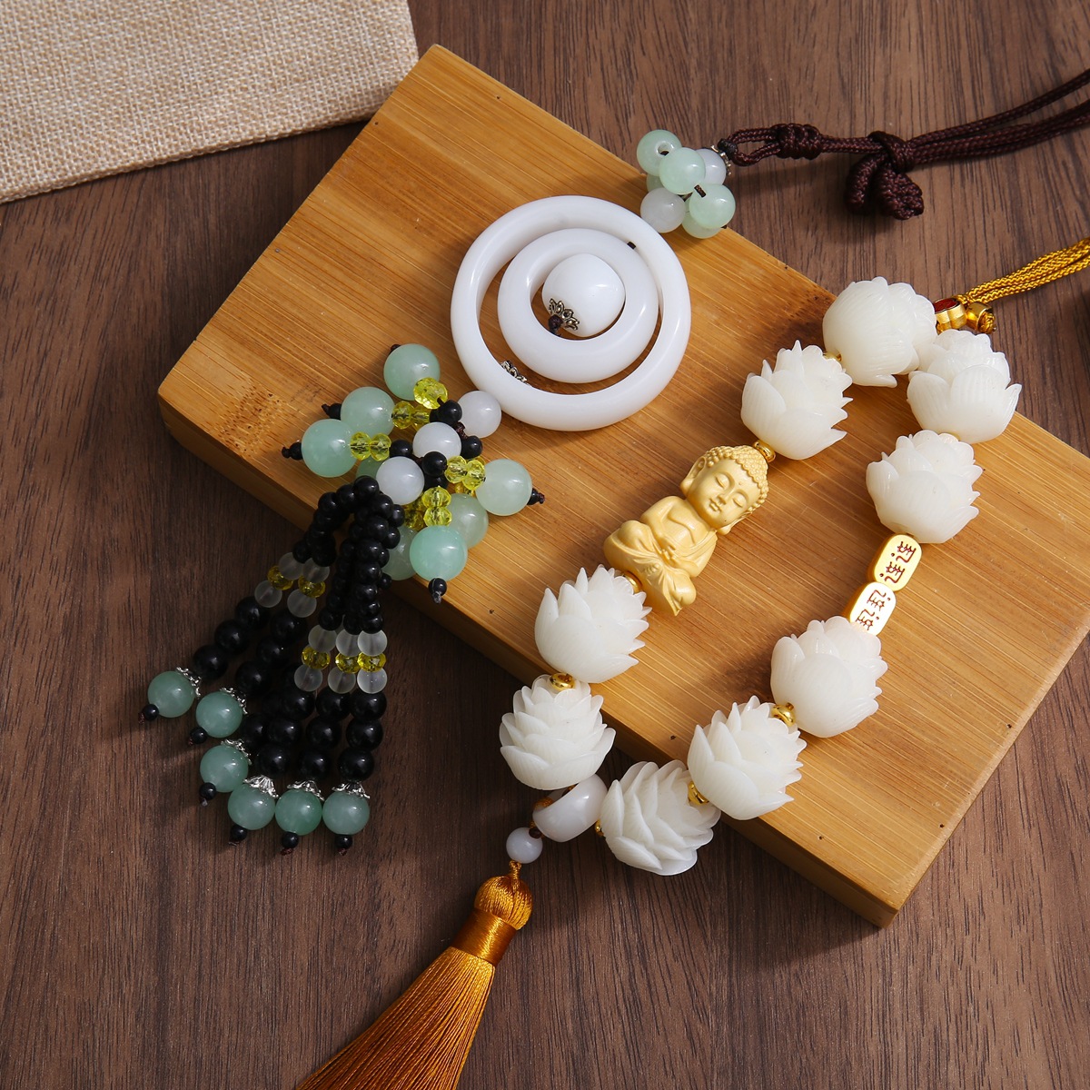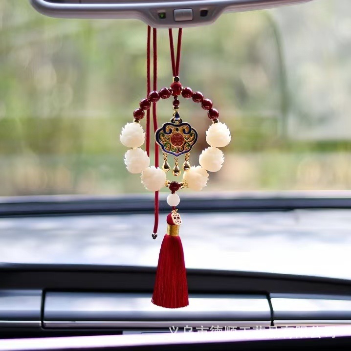 2024新型高級感新疆天山翠如意錠自動車ストラップ古風車内ストラップ女