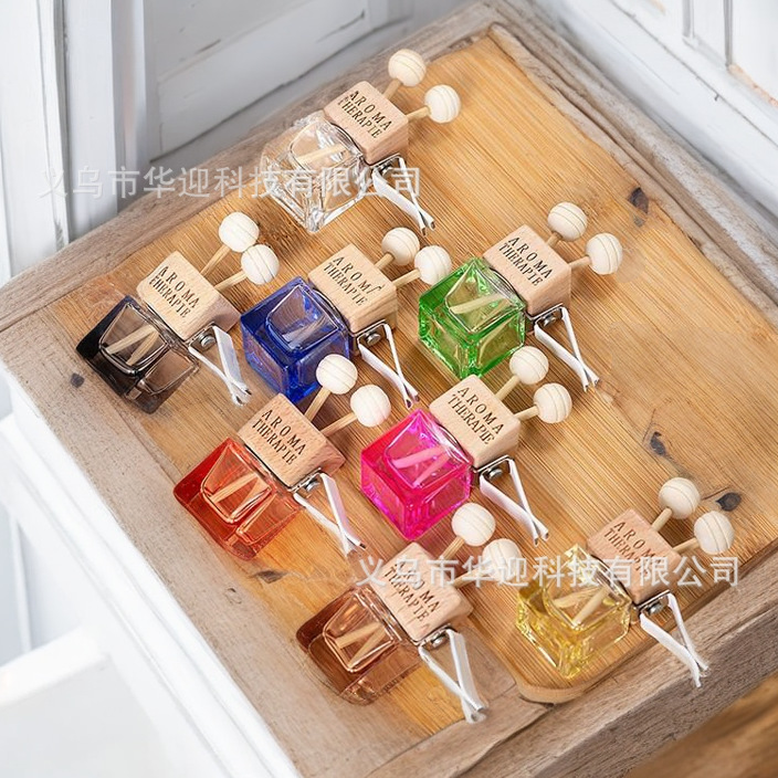 車載エアコン吹出口クリップ四方ガラスカラー香水瓶自動車エアコン香薫ガラスカラーボトル