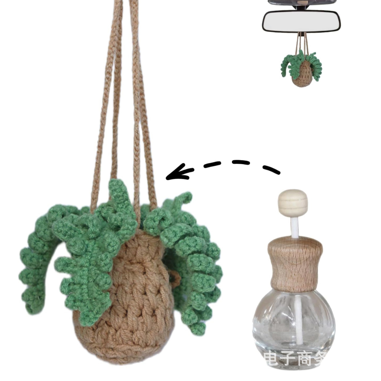 新型クロスボーダー手編み植物の風口アロマボトル自動車のストラップバックミラー装飾車載