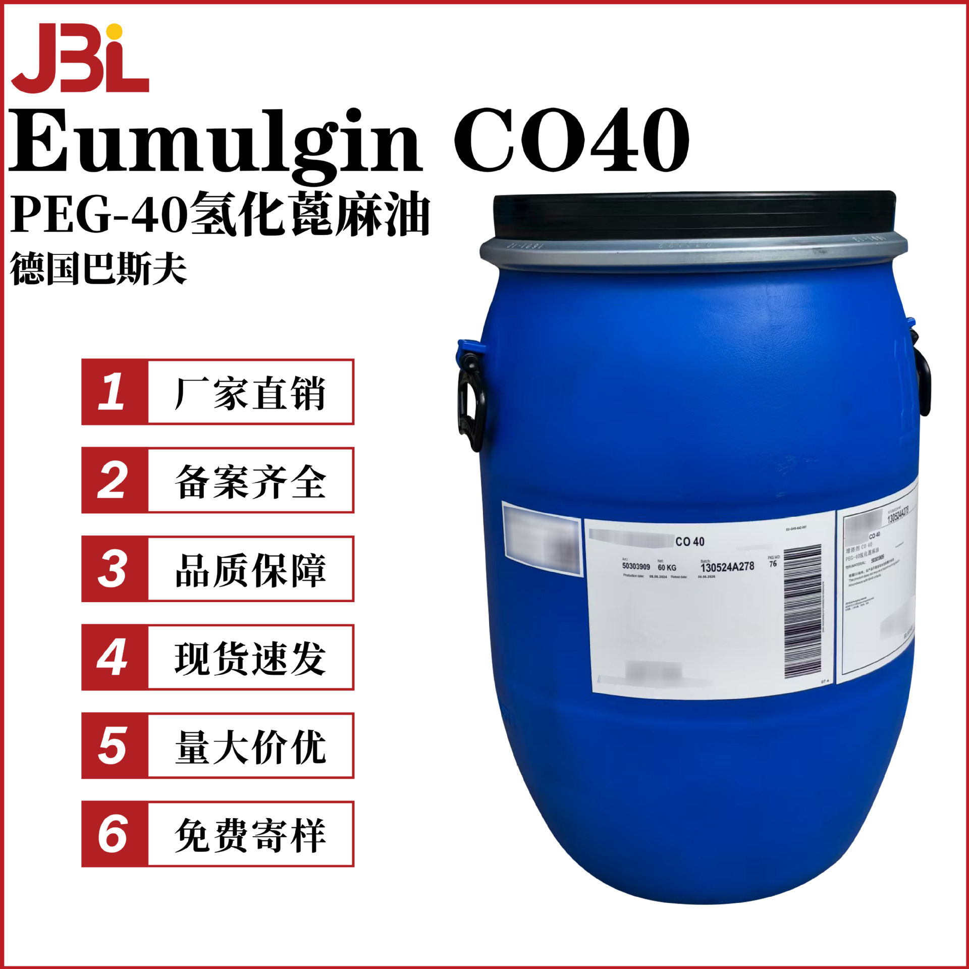 BASF BASF CO40 水素ヒマシ油 PEG-40 フレーバー溶剤透明化学原料