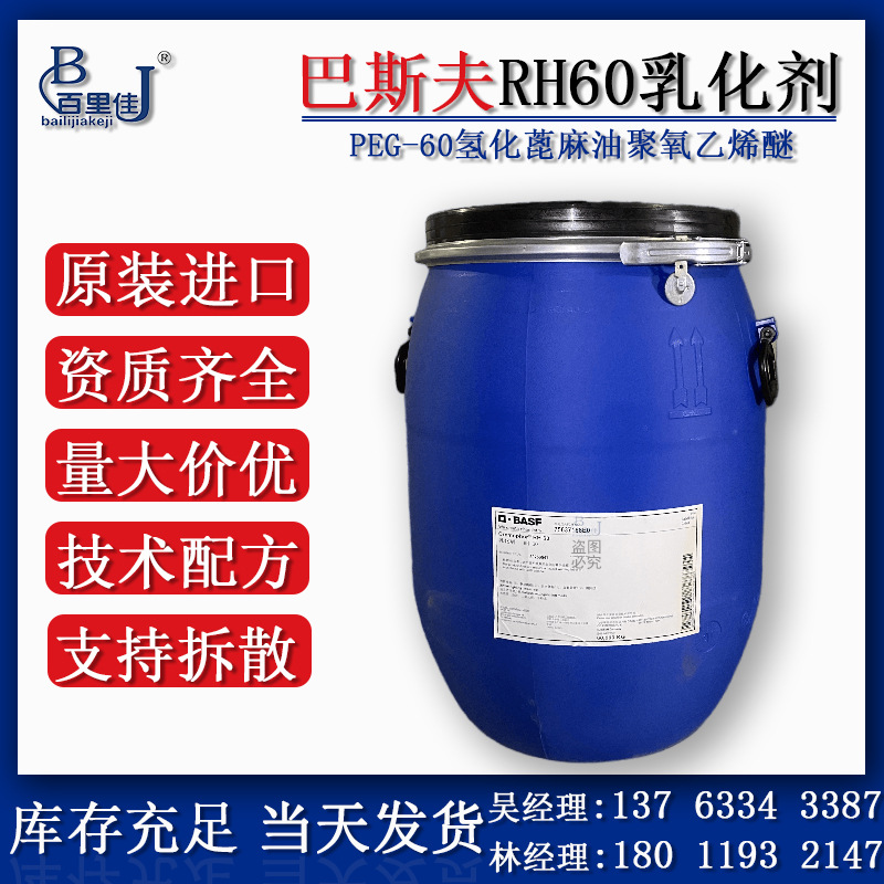 バスフRH60ペグ水素化ヒマシ油ポリオキシエチレンエーテル精油透明増溶剤
