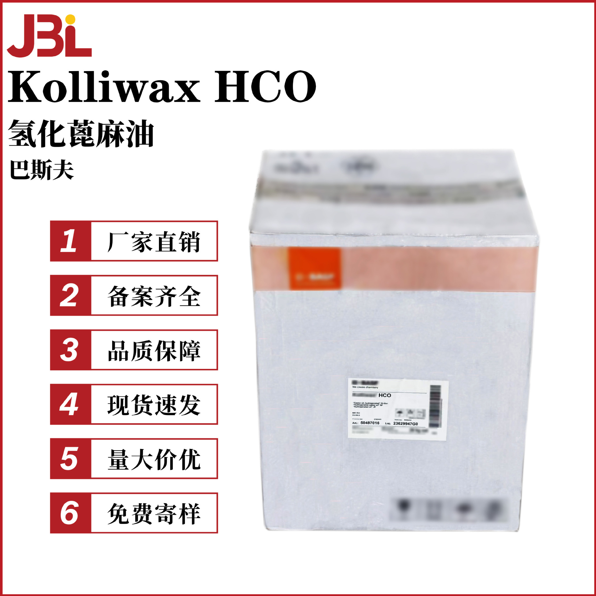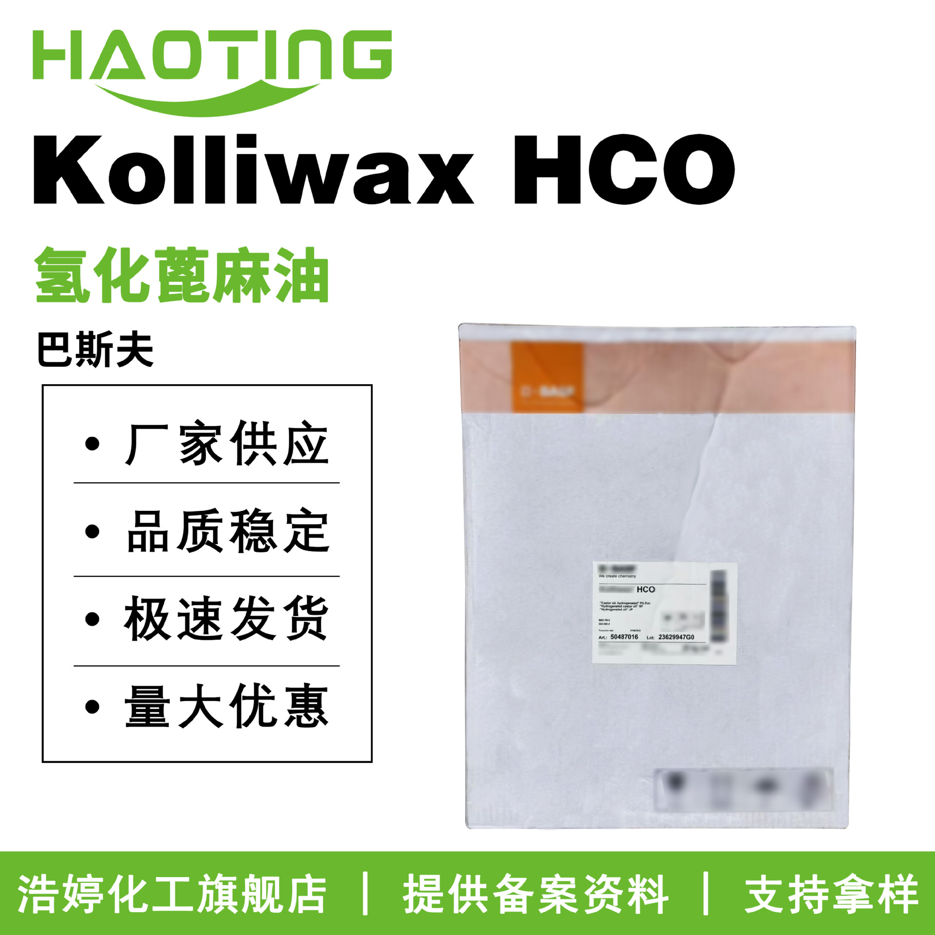 BASF Kolliwax HCO 改質ヒマシ油 ヒドロゲン化ヒマシ油粉末 溶解剤 100g MOQ