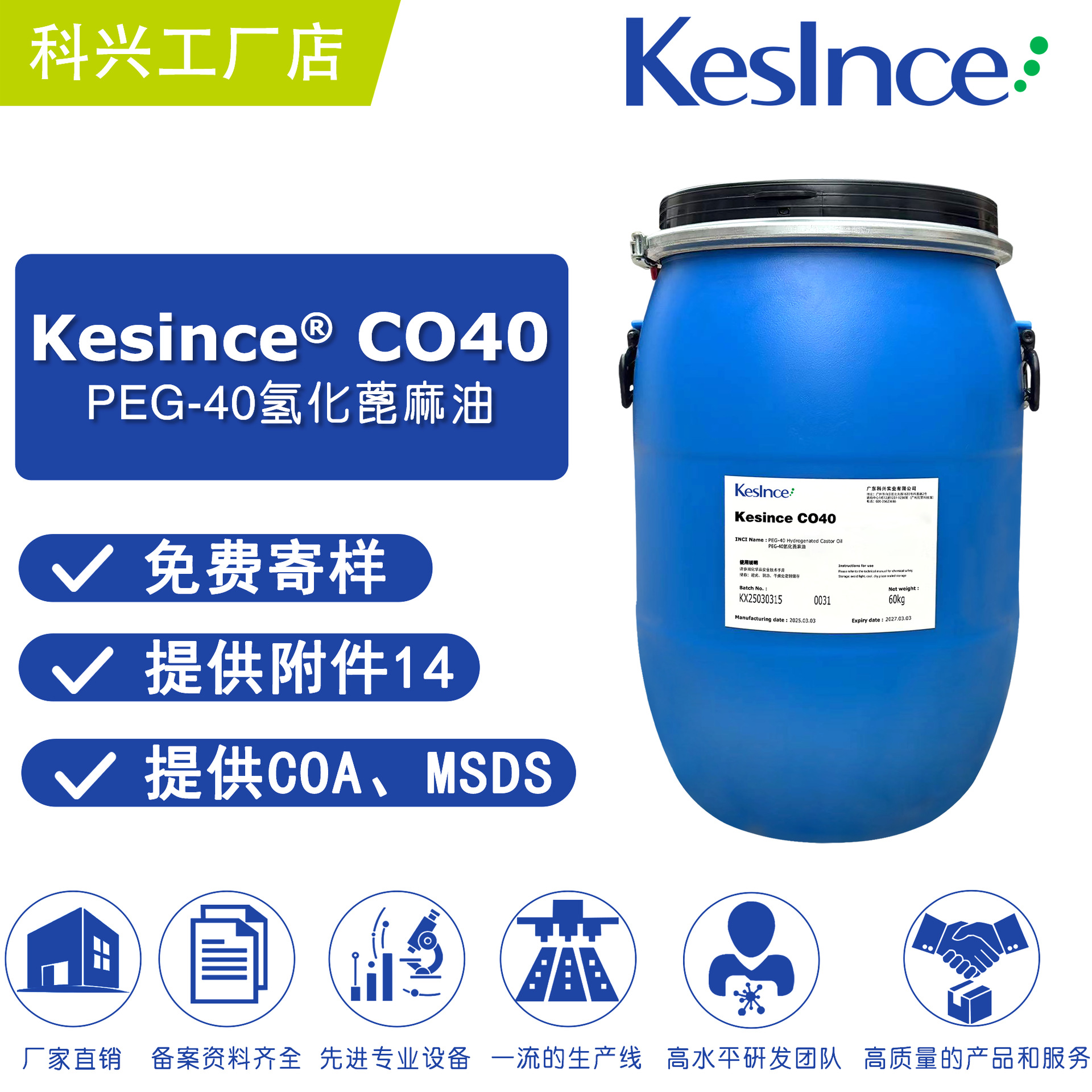 メーカー直供Kesince co 40水素化ひまし油増溶剤ped-40水素化ひまし油