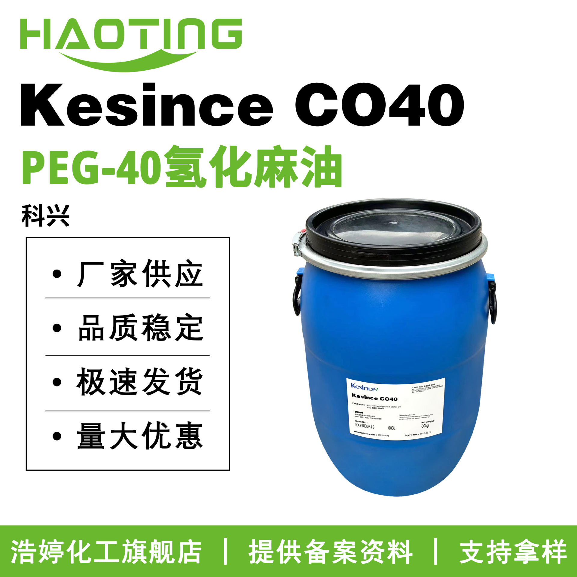 Kesince CO40 ヒドロゲナーゼ ヒマシ油 PEG-40 ヒドロゲナーゼ ヒマシ油溶解剤 100g から