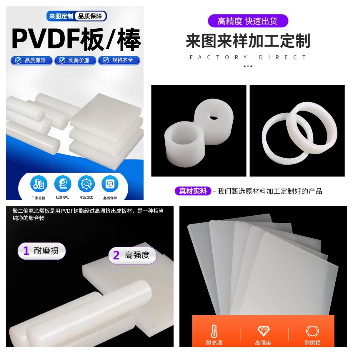 白色新型PVDF板黒色鋼フッ素龍PVDF棒ポリフッ化ビニルシートpvdf丸ガスケット加工