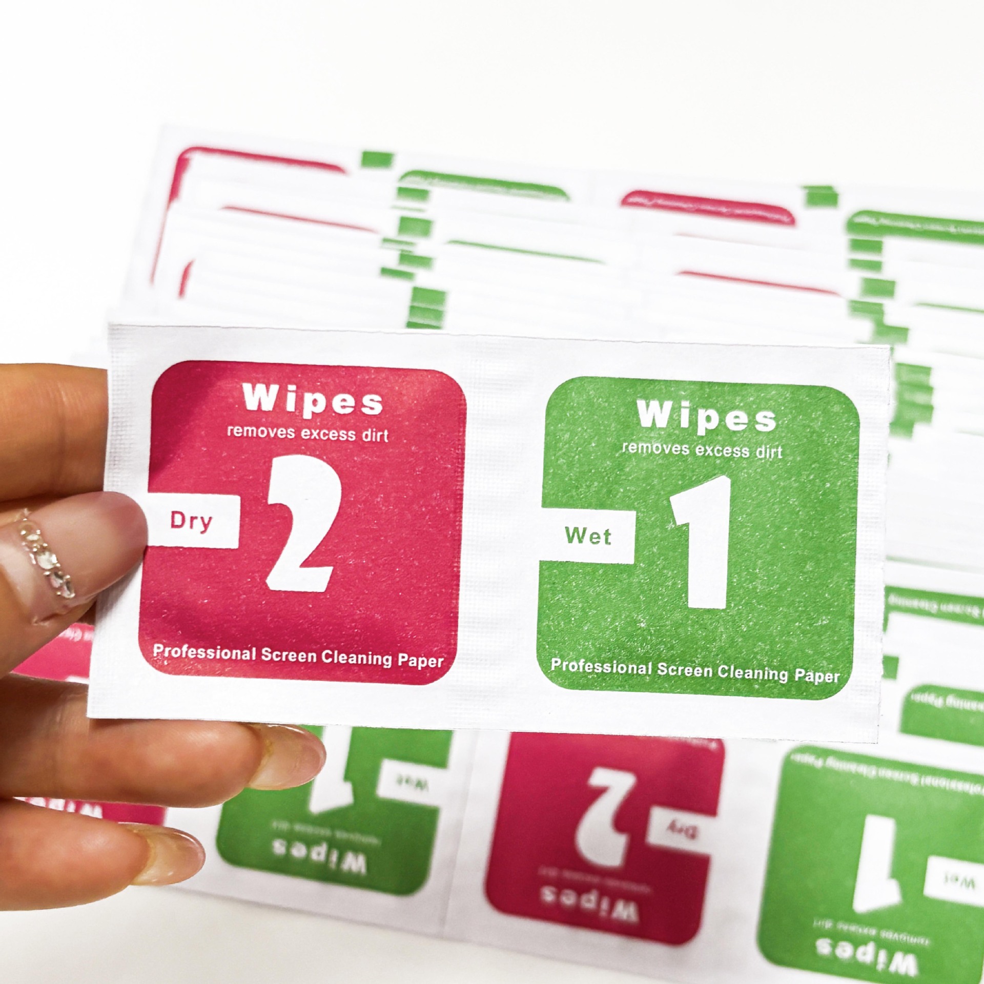 携帯電話強化膜フィルム補助1 + 2乾湿アルコール綿片使い捨て洗浄消毒ウェットタオルアルコール綿