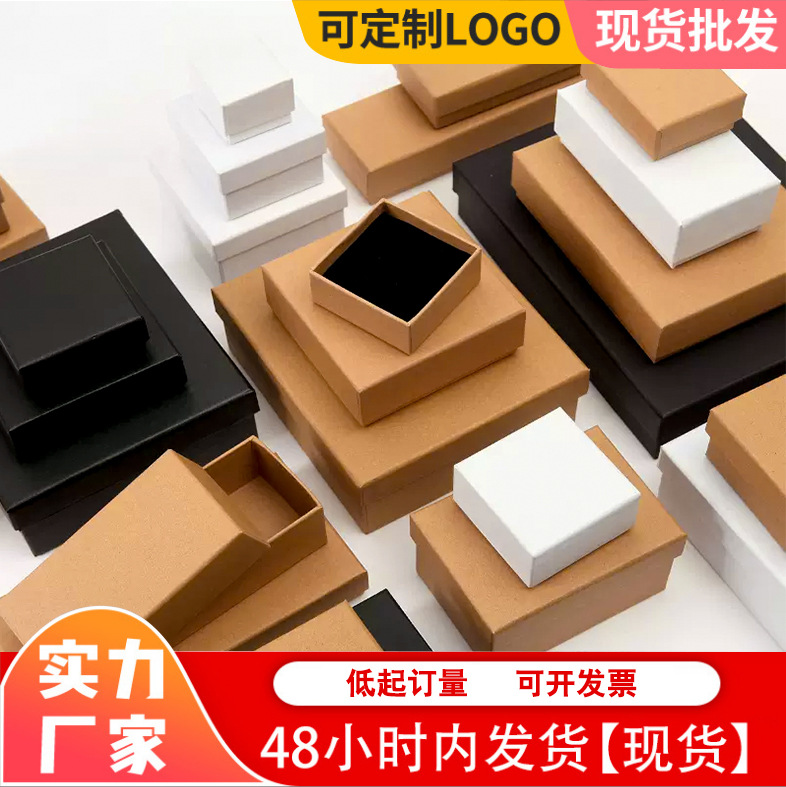 現物正長方形空白黒紙箱カラークラフト紙包装とロゴ赤印刷箔押しブラインド箱