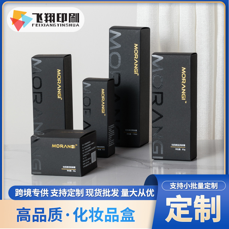 メーカー包装箱カスタム印刷化粧品カラーボックス黒段ボール箱ホットスタンピング製品包装箱ダブルインサートボックスカスタマイズ