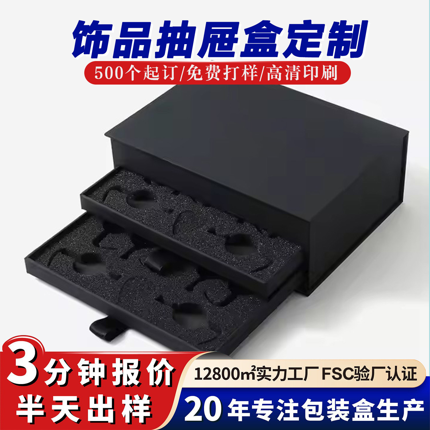 オーダーメイドジュエリー二重引き出し箱カラー印箔押し箱包装スポンジ内のモップ箱カスタマイズ