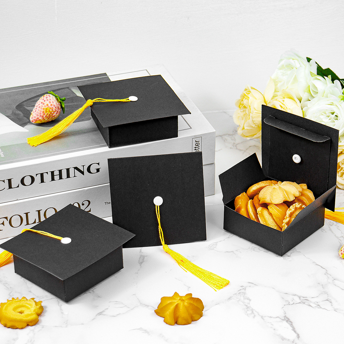 新しい卒業シーズンの包装箱キャンディー箱卒業学士帽パーティーのお返し箱黒カード箱