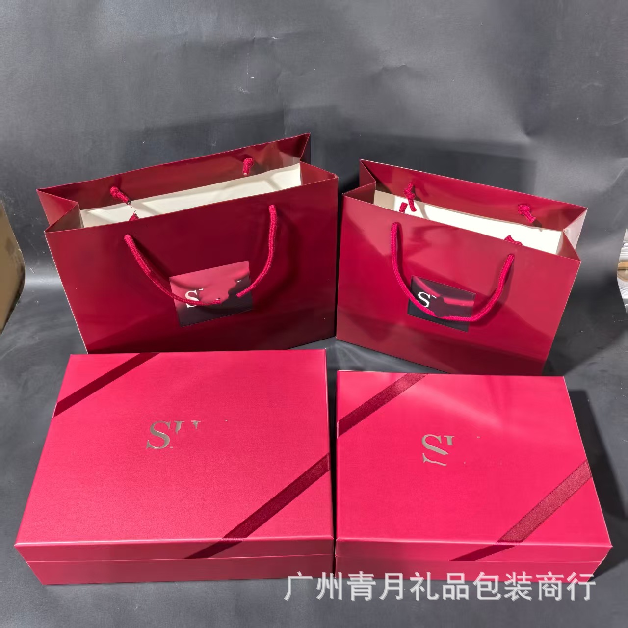 ハンドバッグカスタムアイ衣料品店ショッピングバッグ銅版白段ボール袋赤ワイン化粧品ギフトバッグ卸売