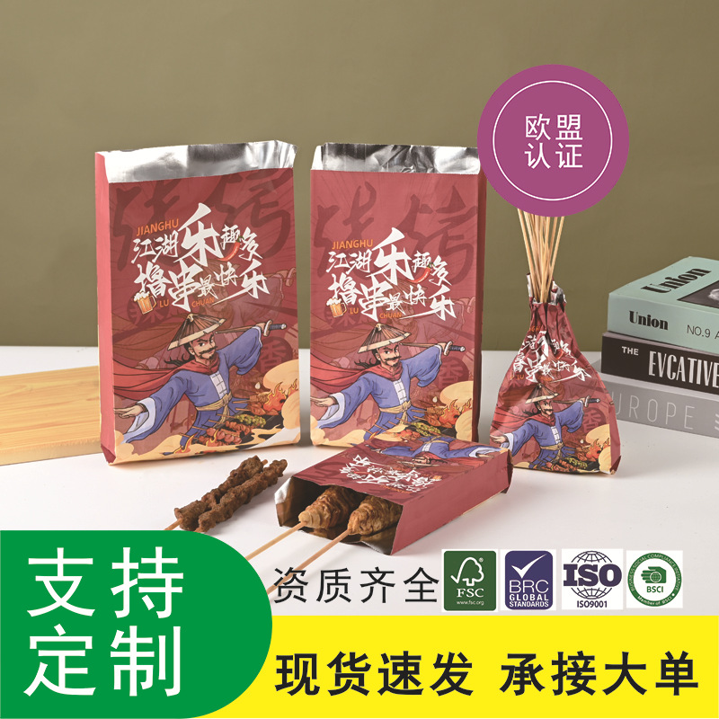 国潮風焼き錫箔焼き串包装袋の外食食品保温防油紙袋の露店パートナーはカスタマイズできる