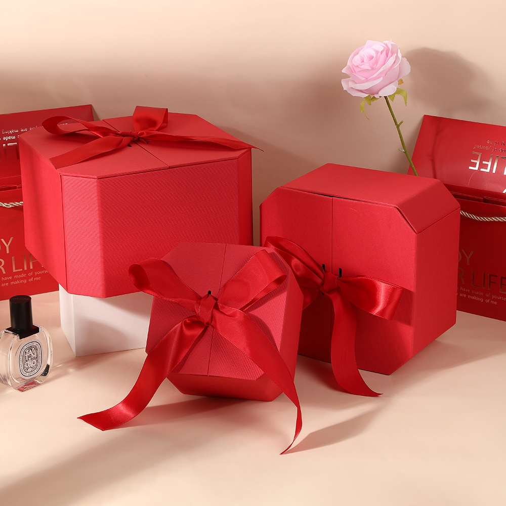 誕生日ギフトボックスギフト赤天蓋香水化粧品人形スナック白ボール紙空箱包装カラーボックス