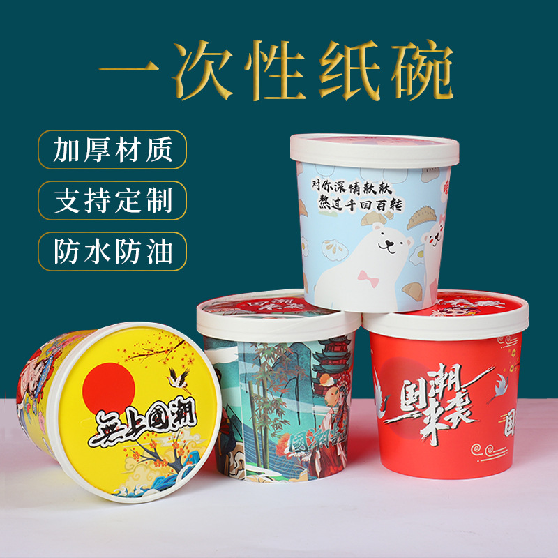 紙碗の使い捨ての小さいサイズの出前の紙箱の冷たい皮の商用包装は屋台の臭い豆腐の円形の厚い蓋を並べます。