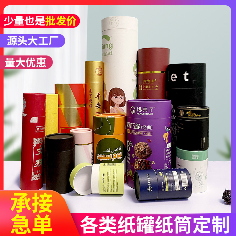 メーカー販売円筒茶紙筒包装四色印刷紙管卸売り加印logo小缶茶包装箱