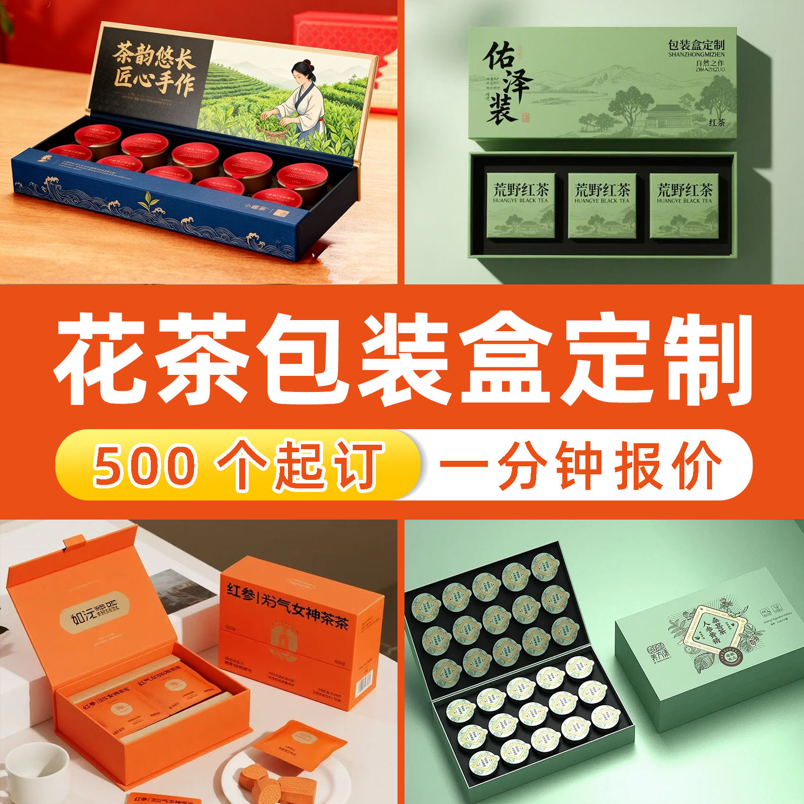 高級茶葉ギフトボックス、カスタムフラワーティー小缶茶包装箱、天地蓋引き出し式空箱、オーダーメイド