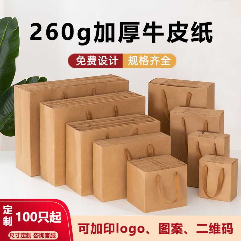 260厚手クラフト紙袋ミルクティーコーヒーの出前包装袋服装共通手提げ袋小ロット印刷