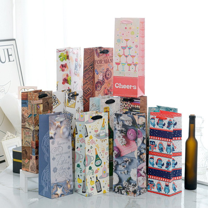 新しいワインの紙袋はワインのプレゼントの手提げ袋を持っています。