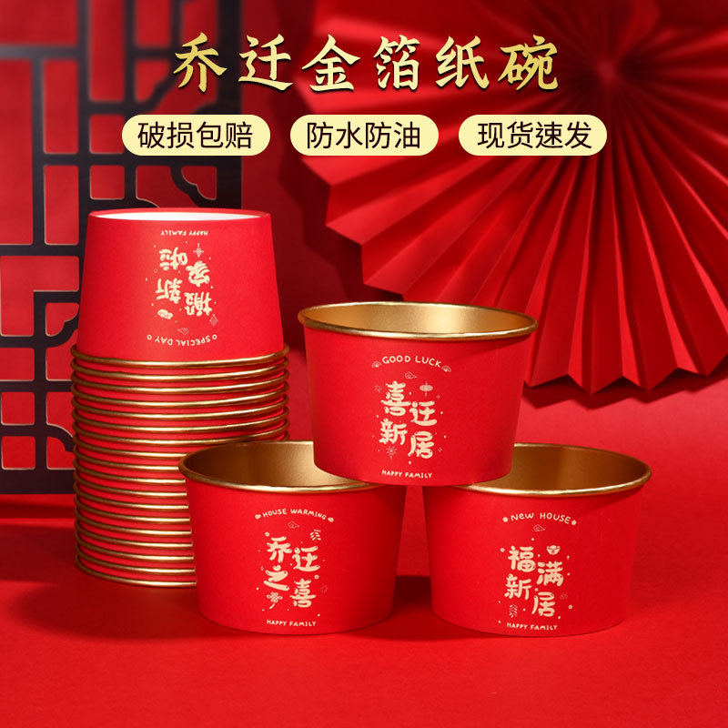 喬迁の喜金箔の丸い紙碗は新しい家庭用品の祝宴を運びます。