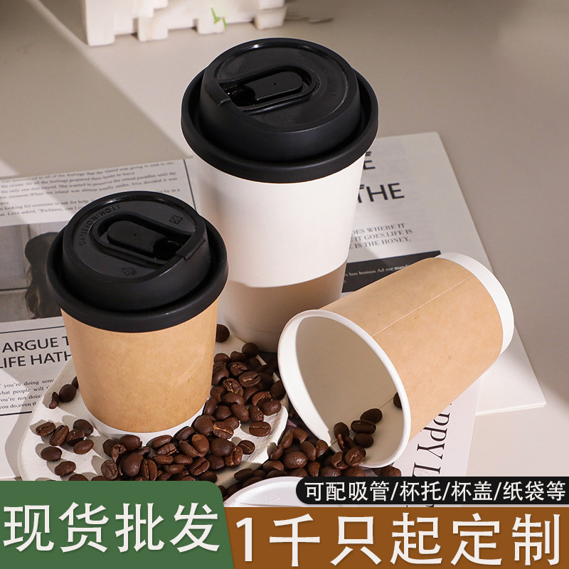 使い捨て厚手クラフト紙カップセット断熱水カップセットコーヒー紙カップミルクカップジュース断熱紙カバー100