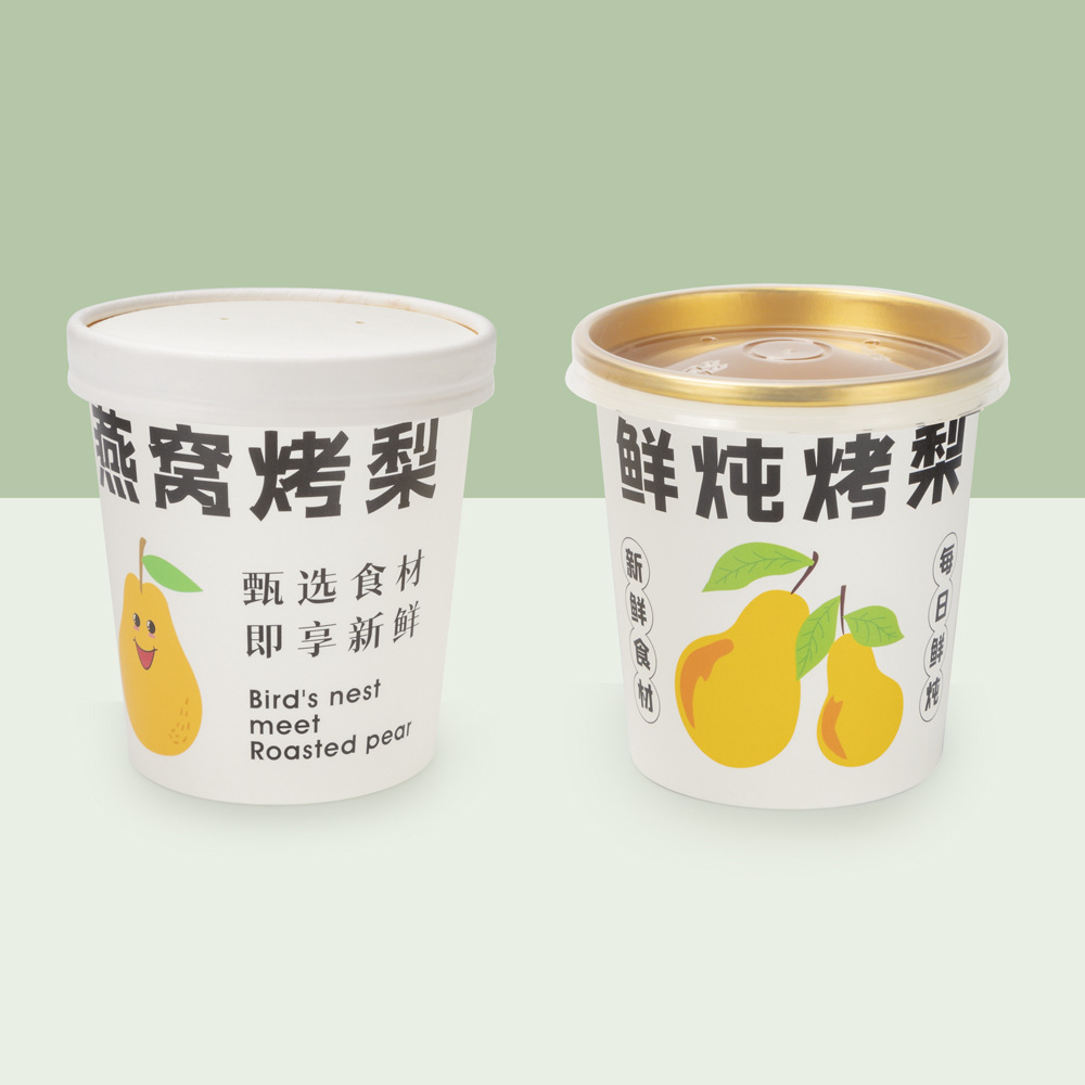 ラッパの花の520mlの焼き梨のデザートのスープのコップの使い捨ての金箔の紙の碗は厚いテイクアウトの梨のスープの砂糖の水を包んで箱を詰めます。