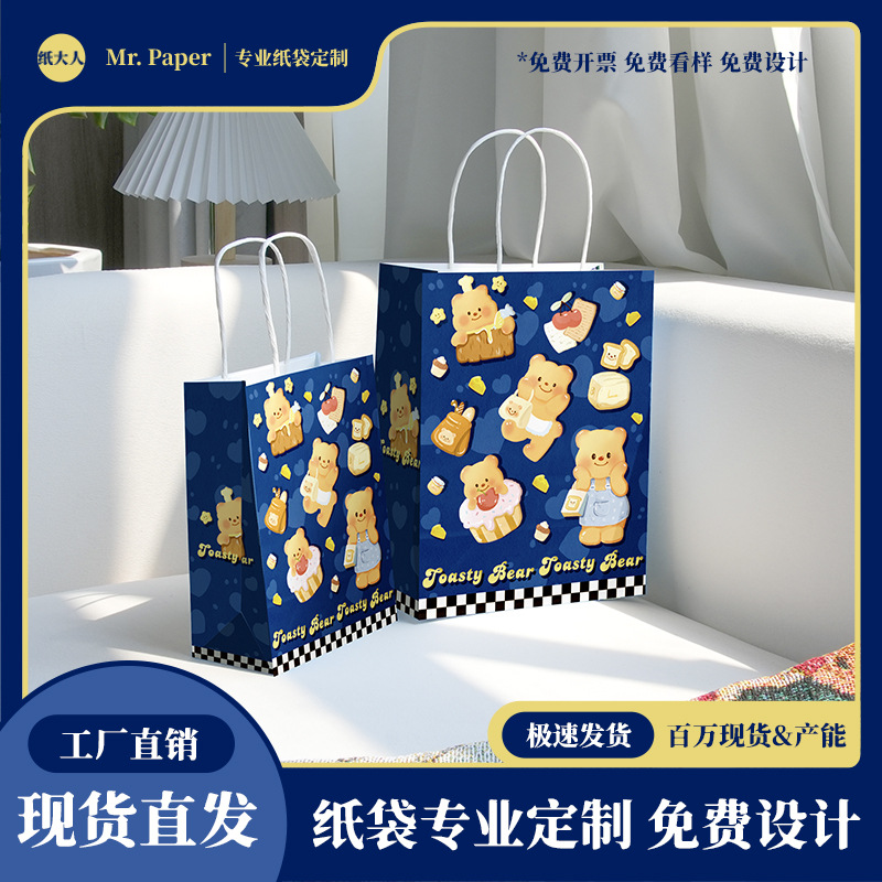 クラフト紙袋、見栄えの良いトーストベア、かわいいギフト包装袋、コーヒーミルクティー包装ハンドバッグ