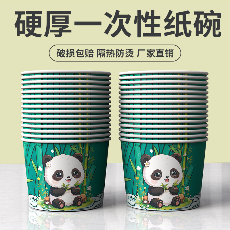 使い捨て弁当箱、国民的トレンド紙ボウル、厚みのある丸いサラダボウル、パンダプリントのテイクアウト包装、春のお出かけやキャンプ