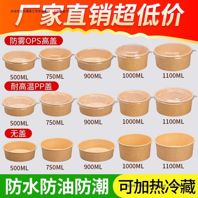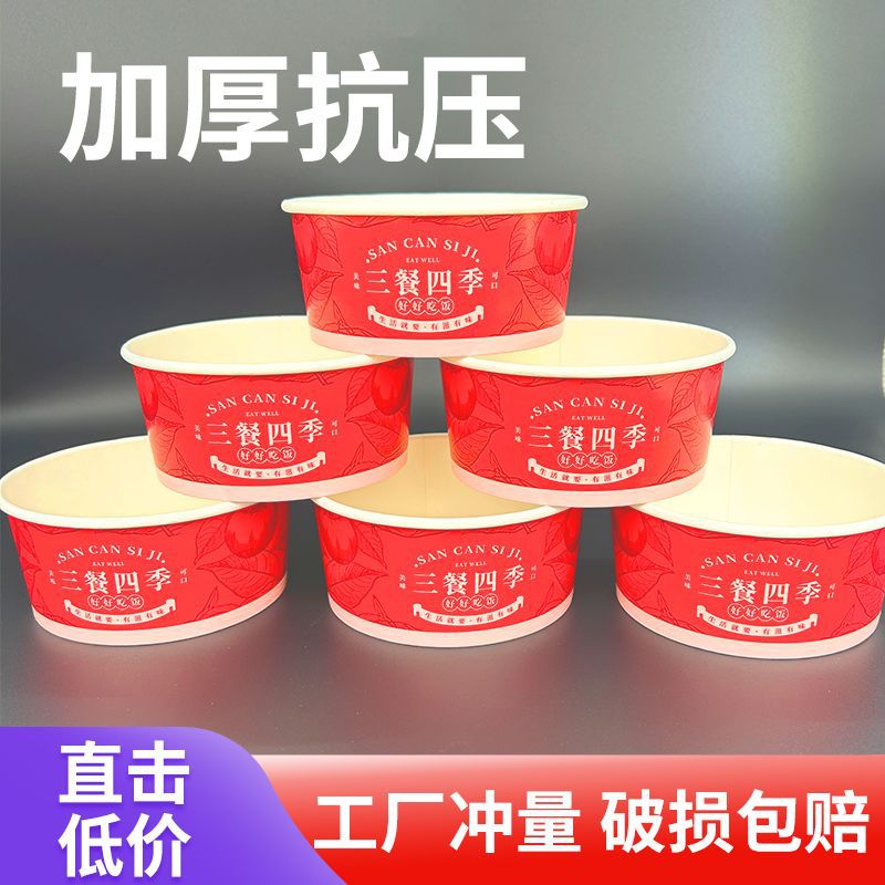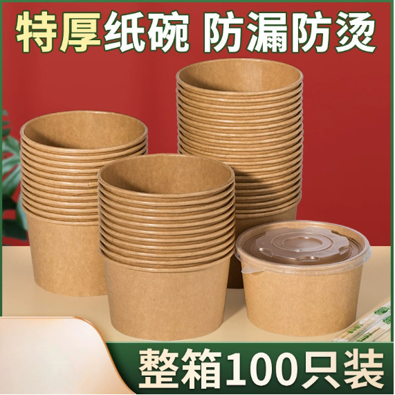 使い捨て紙ボウル全箱卸売厚みのあるラウンド蓋なし家庭用商業テイクアウトファーストフード包装紙弁当箱送料無料