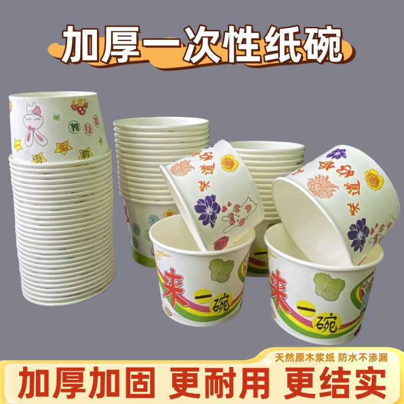 厚みのある天然紙ボウル、使い捨て弁当箱、丸型包装弁当箱、ファーストフードボウル、箸、バルクインスタントラーメンボウル