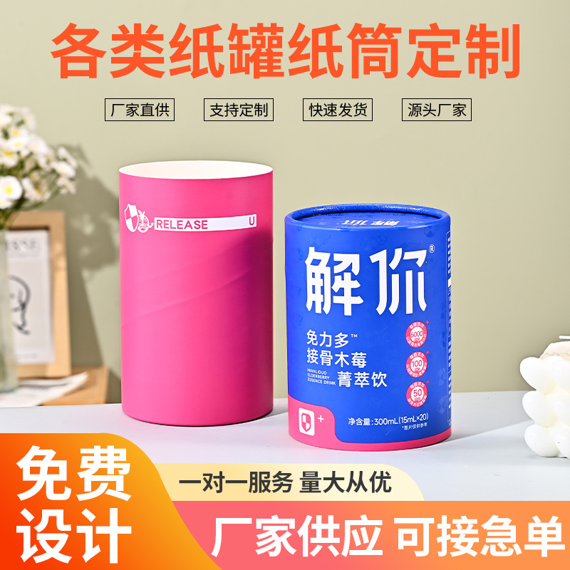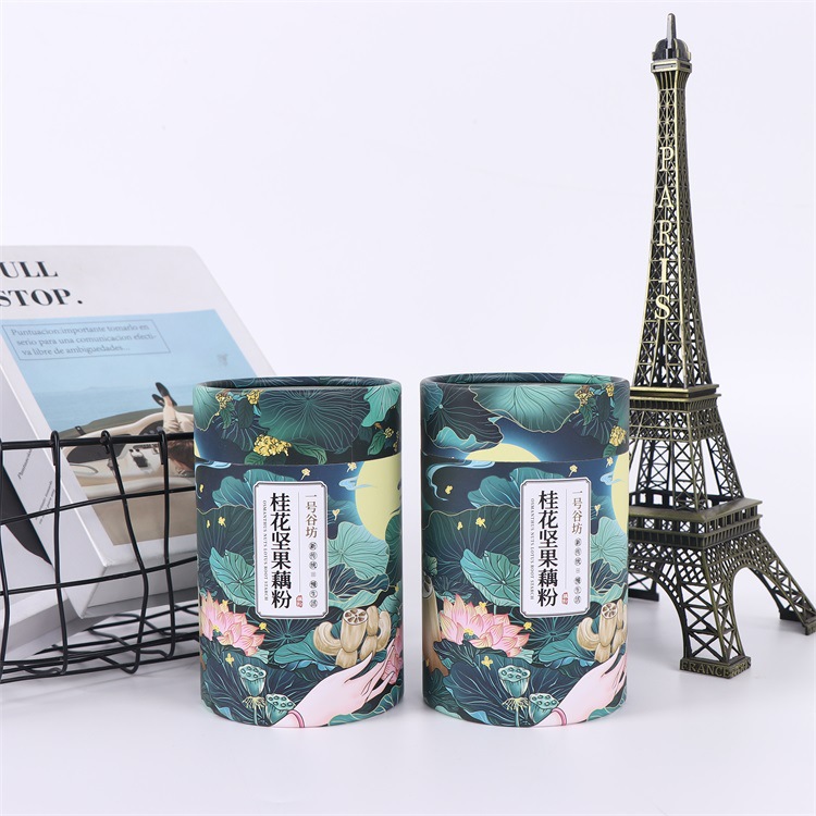 卸売牛革紙茶葉紙丸型包装箱 栄養補助食品スナック飲料紙缶 食品防湿紙筒ロゴ