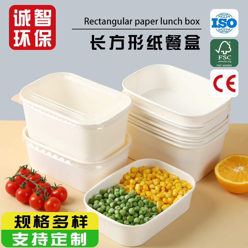 使い捨ての白い長方形のテイクアウト弁当箱、食品グレードの電子レンジ対応ピクニック軽食煮込み包装箱
