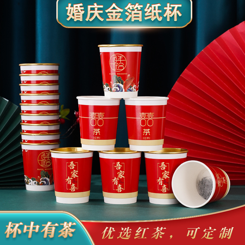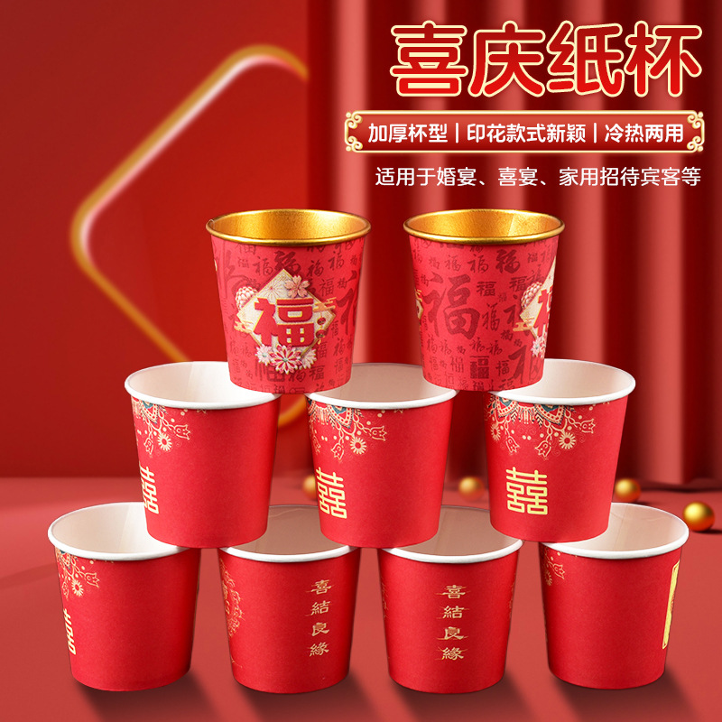 結婚紙コップ使い捨てカップお茶付き家庭用結婚式カップ卸売りお祝い二重結婚カップ