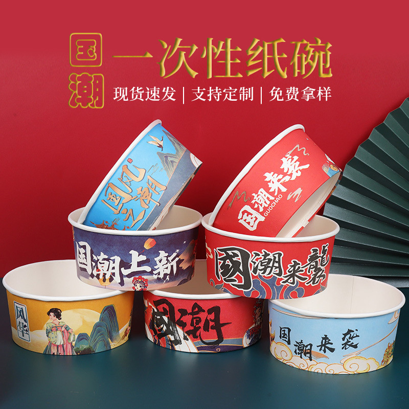 国潮使い捨て金箔紙碗円形弁当箱商用販売包装箱蓋付き防油弁当箱はロゴを印刷できます。