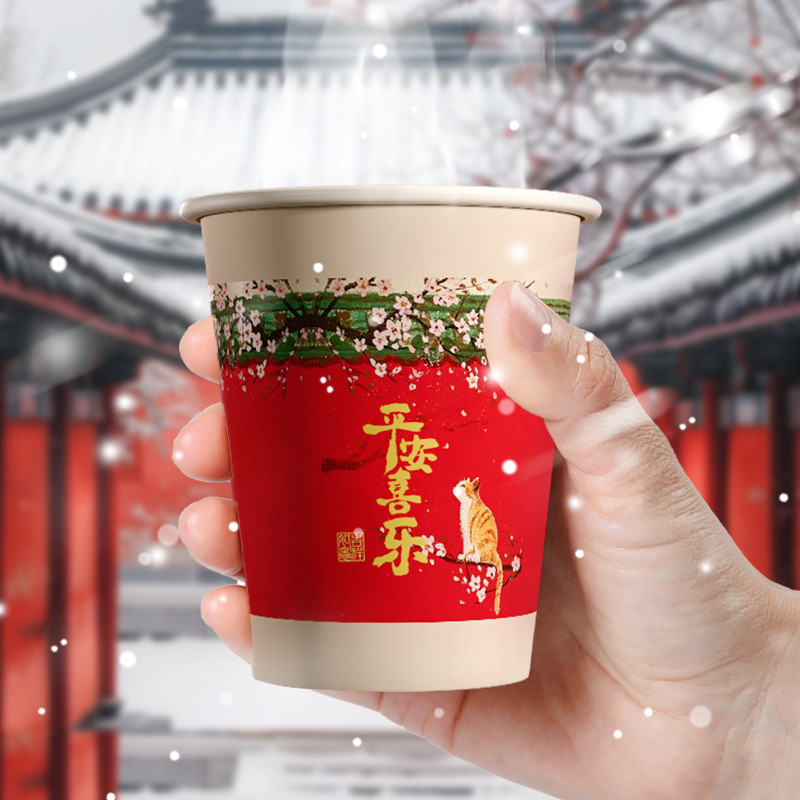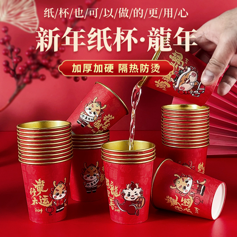 使い捨てコップは2024年の新型金箔をカスタマイズして新年を祝う家庭用厚いコップ卸売り龍年紙コップ