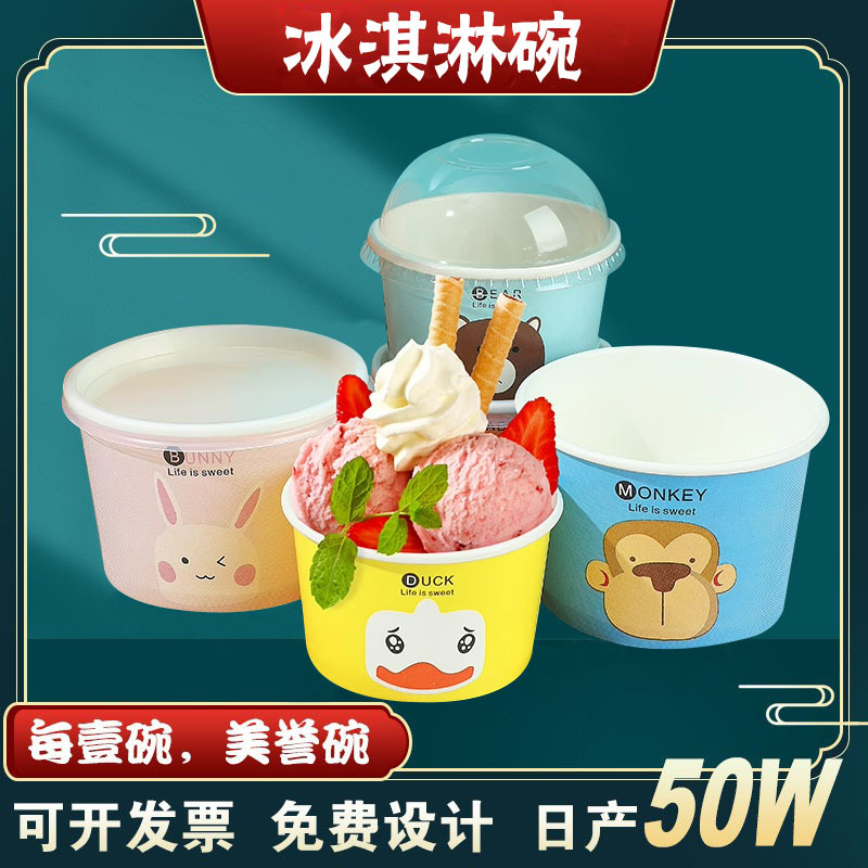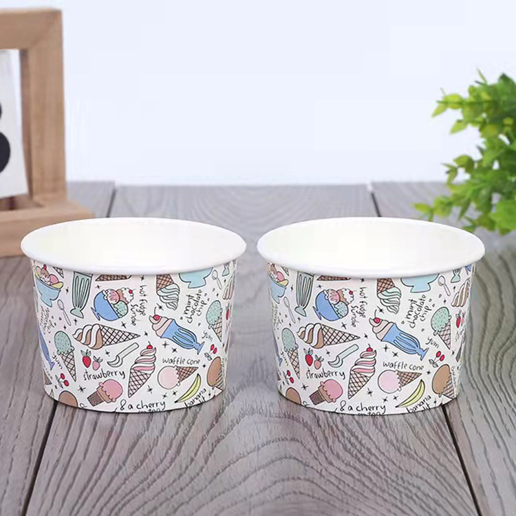 使い捨てアイスクリーム紙ボウルカスタムロゴヨーグルトカップアイスクリームデザート紙ボウル印刷紙カバーアイスクリームカップ