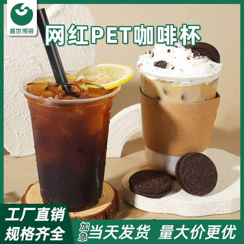 使い捨てコーヒーカップ卸売コールドドリンクアイスパウダー包装カップインターネット有名人 PET 高透明プラスチックミルクティーカップ